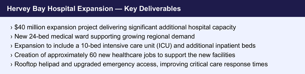 A big part of that regional shift has been driven by ongoing investment into critical infrastructure, particularly the Hervey Bay Hospital expansion. The hospital has undergone significant upgrades as part of Queensland’s multi-billion-dollar health infrastructure program, and the scale of what has been delivered is telling.