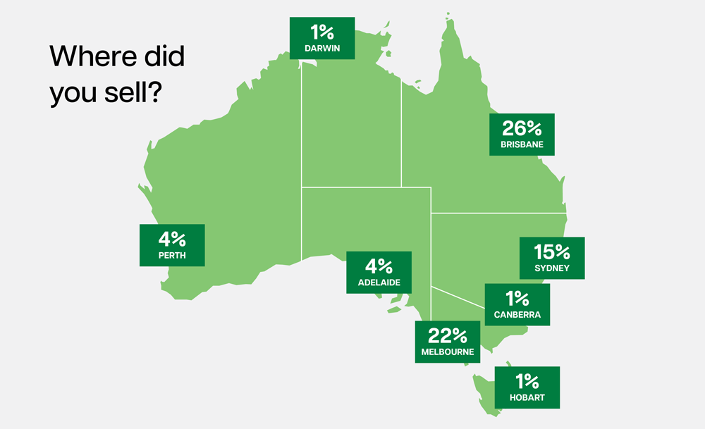 - Brisbane: 26% of respondents sold a property here, up from 23.3%.