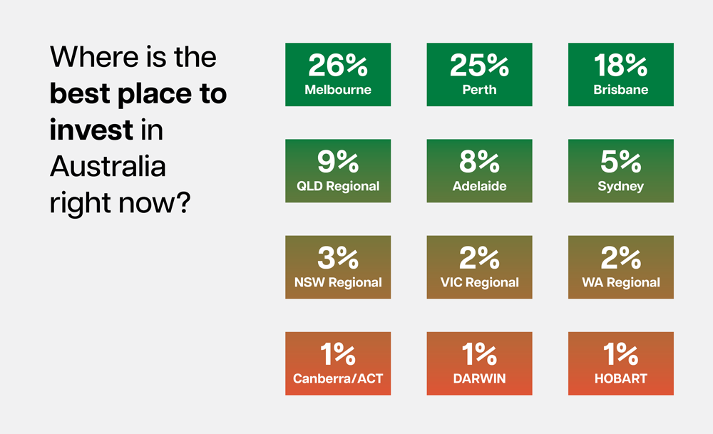 While the overall sentiment has cooled, with 45.7% of investors believing now is a good time to invest (down from 56% last year), key markets show signs of resilience and growth potential. Melbourne continues to be viewed as the top location for future capital growth (26.2%), followed by Perth (25.1%) and Brisbane (17.8%).